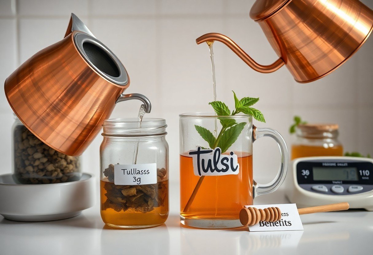 - Tulsi dose: 1 tsp loose leaves or 1 tea bag per cup, steep 5-10 minutes.